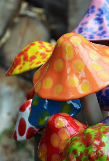 Made in America, each mushroom is glazed by hand guaranteeing no two alike. With over 18 original fresh colors, we hope you can find the perfect mushroom for your garden. They like to be planted together in groups. (No lone soldiers out there!) Plant a different color scheme for each season. Great for window boxes and planters.