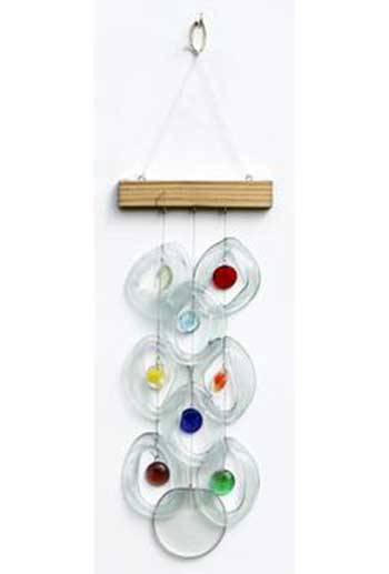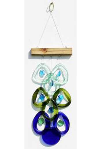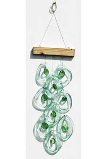 These gorgeous glass wind chimes are made in Georgia from recycled glass bottles that has been kiln fired to strengthen the glass. Tougher than they look. Hang them under an eave or inside by a window!