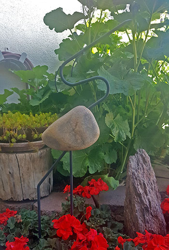 Each spring, Minnesota farmers discover the earth has once again given birth to stones of every imaginable shape and size which appear to have magically popped to the surface of the farmer’s field, hence they are called fieldstone. This phenomenon is due to the cyclical freezing and thawing of the ground. Often they appear as if giant birds have laid eggs all over the ground. Charles Adams, Thomas Widhalm, and their small group of studio artists select the finest of these fieldstones from the farms that grow them and add their unique copyrighted iron work to create one of kind sculptures. These beautiful pieces are suitable to adorn both indoor and outdoor areas.
