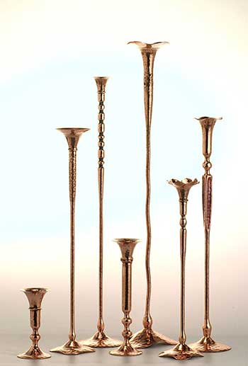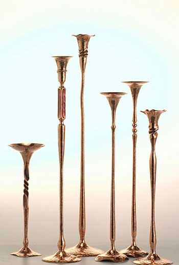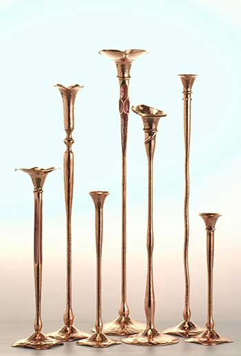 Hand-wrought museum quality copper candleholders.