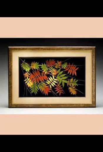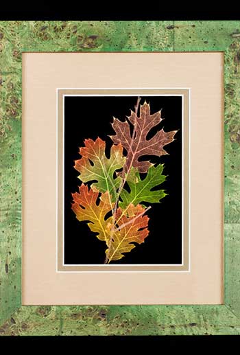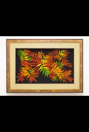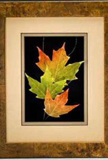Booker’s unique, patented process combines art and science. The skeletonize process involves an acid wash that literally dissolves away the cellulose in the leaf and leaves a preserved skeleton. The leaves are then air-brushed to resemble decaying autumn leaves. These pieces are truly a work of art and a wonderful conversation wall-art piece.