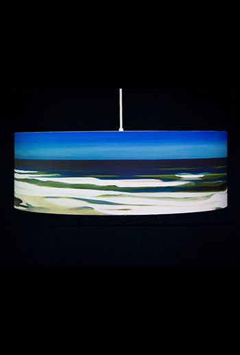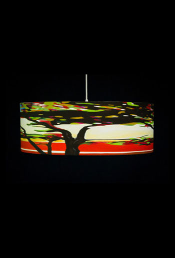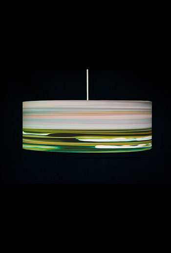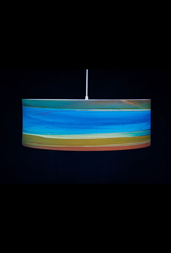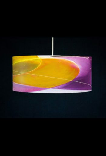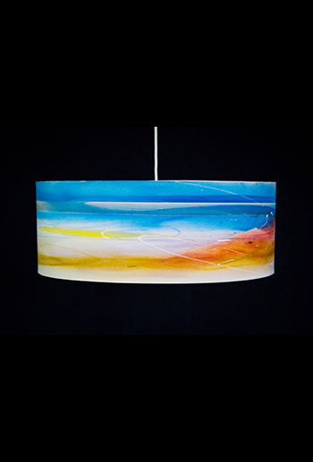 Pendant lamps with giclee shades of original artwork. Shades are made of 100% Cotton Velvet watercolor paper, backed by a protective liner for easy cleaning, mounted on white powder-coated lampshade rings and sealed with a UV-blocking matte varnish.